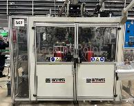 Extrusión-soplado hasta 2 l. Fuerza de cierre: 200 kN Carrera de cierre: 260 mm Ancho máximo del molde: 760 mm Espesor mínimo del molde: 2 x 150 mm Longitud máxima del molde: 500 mm Carrera del carro: 770 mm Cabezal de extrusión: WT35, 3 capas, 6 salidas Extrusora: E50/25...